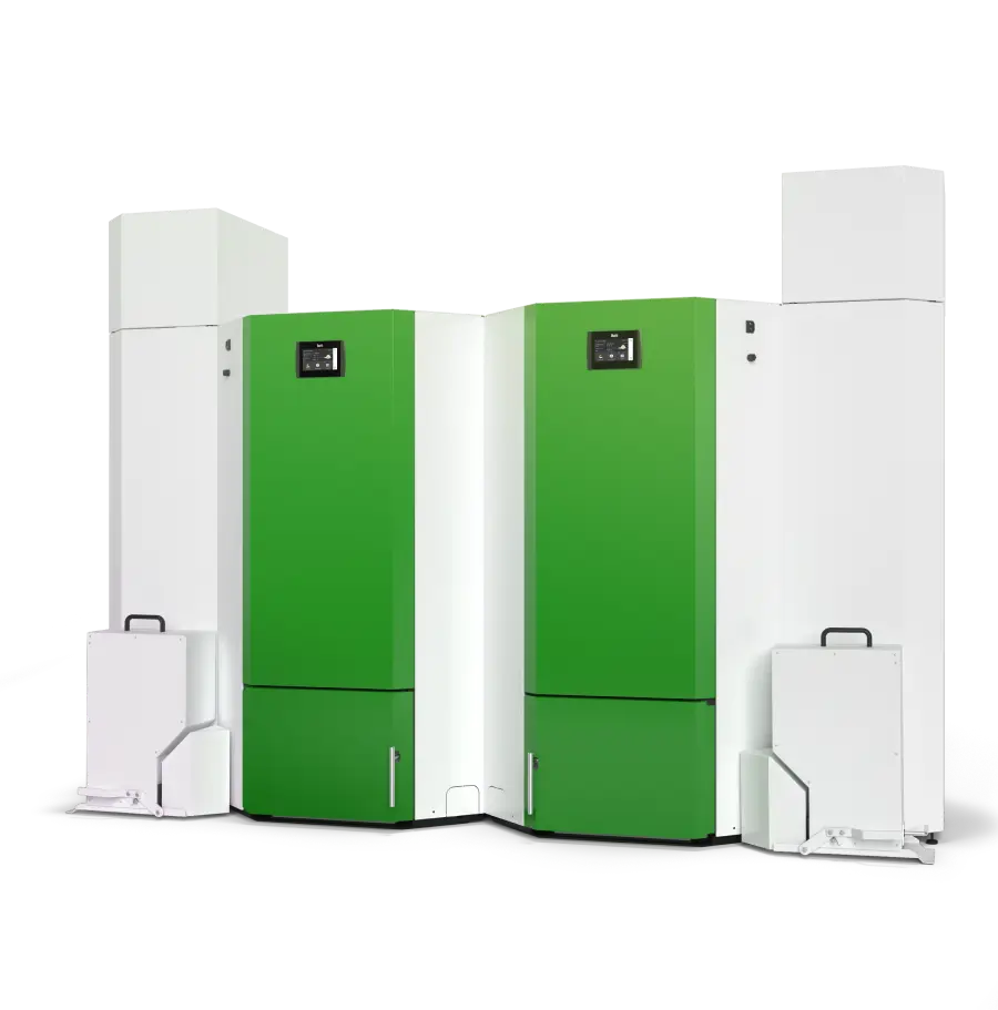 Per als sistemes Pellematic en cascada no cal gaire espai. Per exemple, 2 calderes es poden instal·lar com un sol bloc en només 3,6 m² per a 128 kW de potència d’un sistema en cascada.