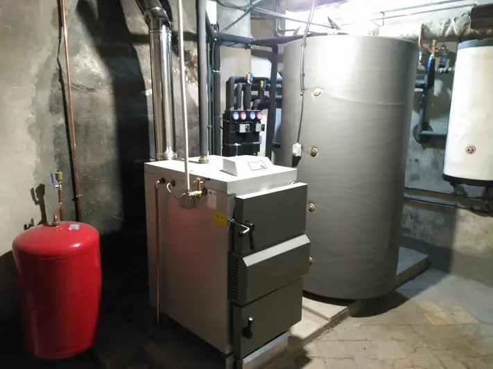 El sistema compta amb un circuit de calefacció amb radiadors i un dipòsit d’inèrcia de 1000 litres amb dipòsit d’ACS de 200 litres, que permet aprofitar al màxim la calor generada per la combustió de la llenya.