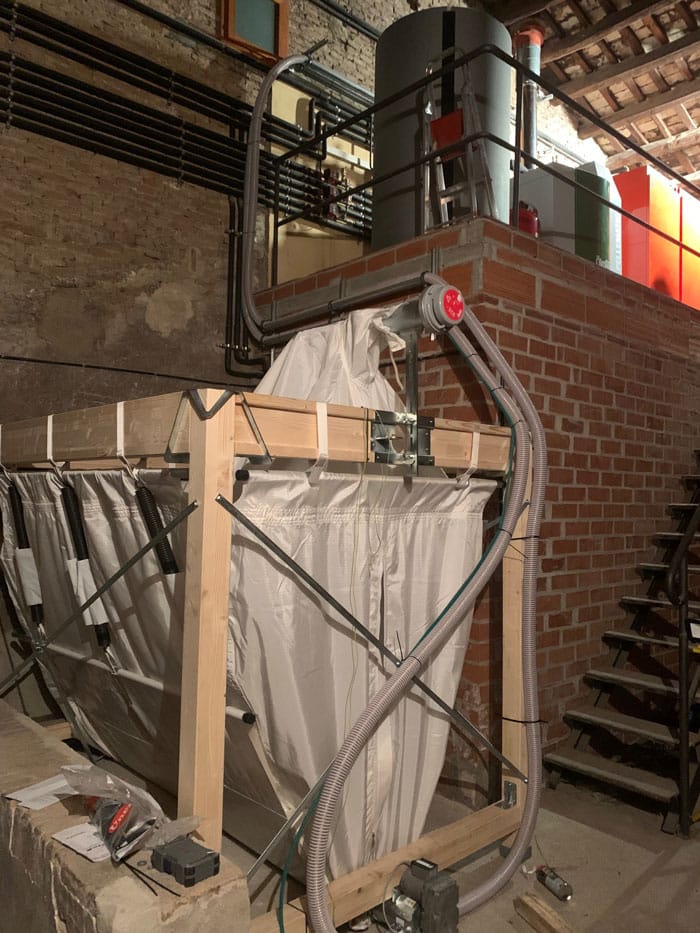 El sistema disposa de dos circuits de calefacció i un silo tèxtil de 4 tones per a l’emmagatzematge del combustible.