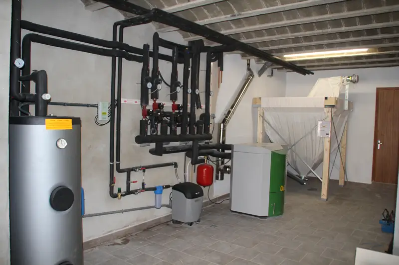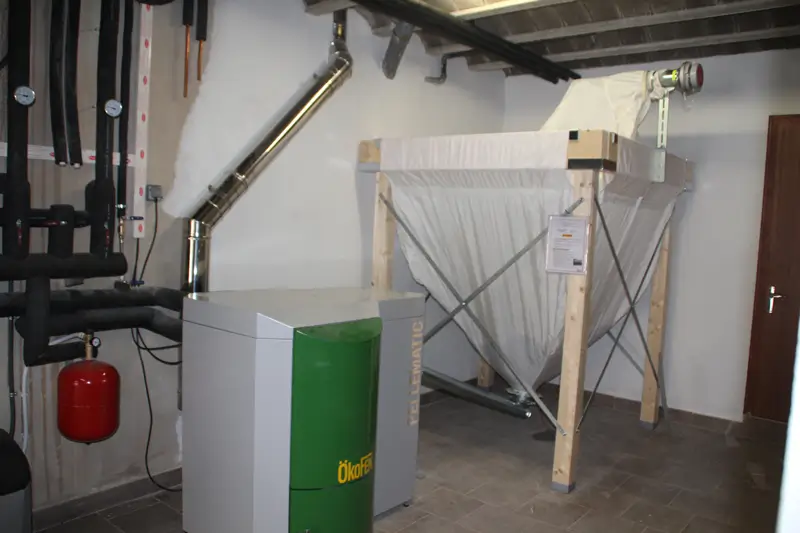 Instal·lació realitzada en un habitatge unifamiliar a Prats de Lluçanès (Barcelona) amb una caldera de pèl·lets Pellematic de 20 kW amb alimentació mitjançant caragol sense fi.
